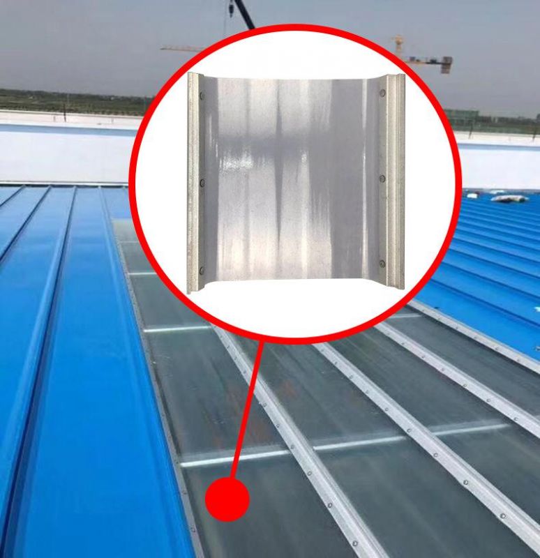 FRP钢收边钢锁边采光瓦系采用宝钢镀铝锌钢条南通天河不饱和树脂或者同等级优质不饱和树脂和无碱玻璃纤维纱为基材,表面覆盖耐老化PET薄膜,用压型铁边镶压在两侧并做防水处理,达到与彩钢瓦的连接,具有无渗水隐患,耐老化,透明度高,光线漫反射等特点,是安装方便的的采光材料,在高等级钢结构厂房、化工厂砖厂钢铁厂农贸市场、养殖场等场合得到广泛应用