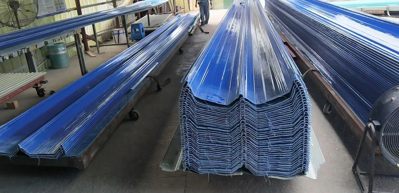 FRP防腐瓦系采用优质阻燃不饱和树脂和无碱玻璃纤维纱为基材,添加色浆,表面覆盖耐老化PET薄膜,具有完全不透光,B2级阻燃,耐酸碱等特点,完全可以代替彩钢瓦应用在有耐腐蚀性要求的场合,如纺织厂,铸造厂,电镀厂等。